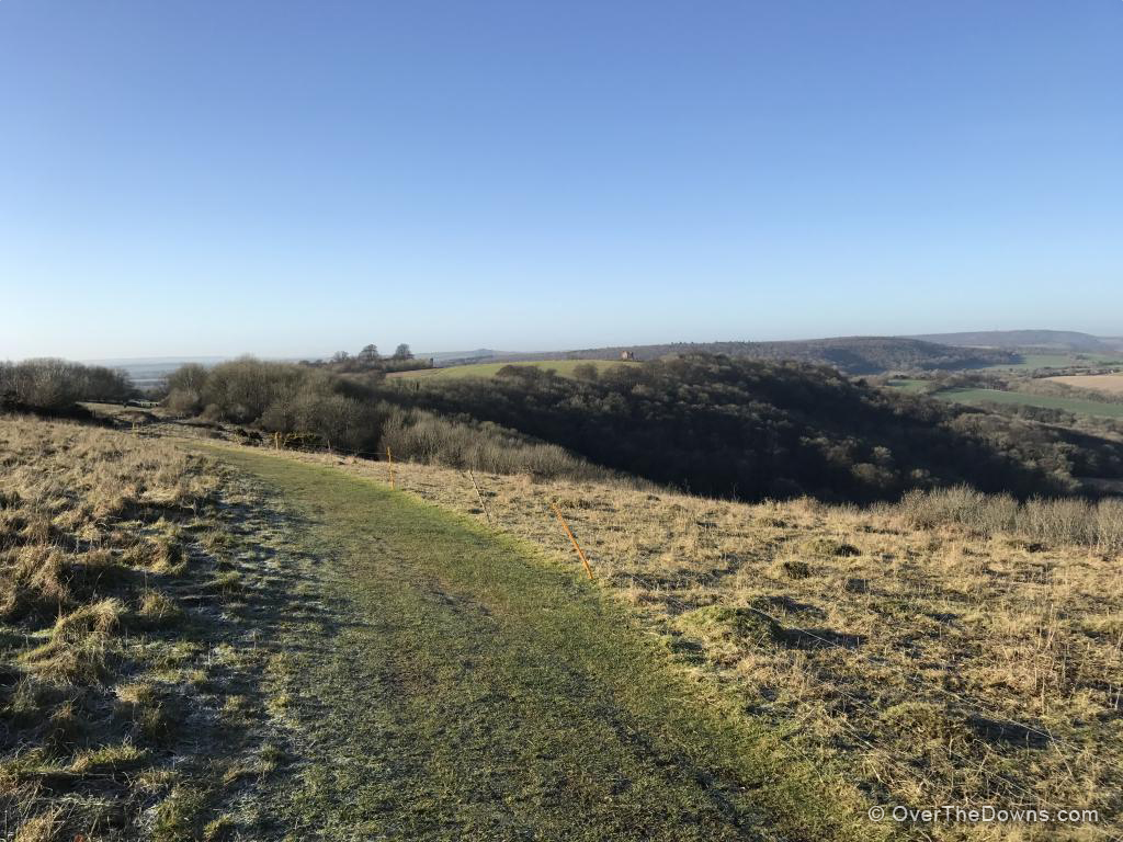 Beacon Hill leading into Harting starts with a climb then leads into Harting Down, which is a fast downhill chalky section which requires some care as can be slippery when wet. You will then have to go around to the right of the stone pile with post, this takes you around the hill. The hill is not cyclable and is not part of the SDW.